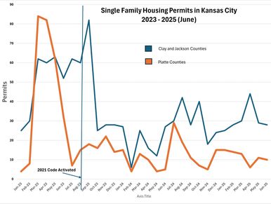 No. Transitions to new building codes typically generate fluctuations in activity. For example, in Kansas City, the adoption of the 2021 Energy Code in late 2023 sparked a spike in permits immediately before the enforcement of the new code, followed by a drop, and then built back to prior typical levels of activity.